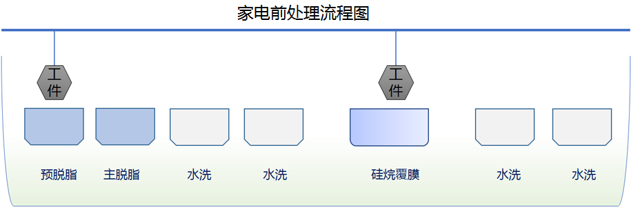 預(yù)脫脂—主脫脂—水洗—水洗—純水洗—硅烷處理—純水洗—純水洗